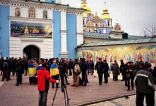 Сегодня утром в Михайловский собор, где собралось большое число активистов, и пострадавшие - протестующие в результате разгона, которому подвергся весь Евромайдан, приехал "Беркут".