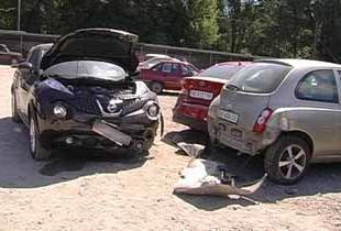 В Днепропетровске на жилом массиве Тополь произошло ДТП с участием восьми автомобилей. Женщина за рулем автомобиля Nissan Juke, выезжая с охраняемой стоянки, разбила восемь автомобилей.