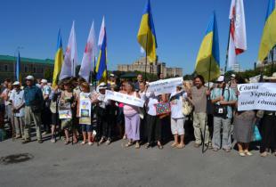 В это время под окнами обладминистрации проходили сразу три пикета под знаменами партий «Наша Украина», «Батькивщина» и ВО «Свобода», люди скандировали - "Банду геть!".