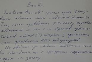 По данным текста, после проведения 8 ноября очередной медкомиссии Юрий Луценко так и не получил в течении 20 дней ни одной из прописанных специалистами МОЗ пилюли.