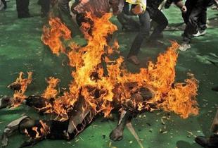 Скорее всего, речь идет о самоубийстве. В четверг, 29 ноября в Москве около 19:30 мск неизвестный облил себя легковоспламеняющейся жидкостью и поджег. Жильцы дома №43 по ул. Шипиловская, где и произошел акт самосожжения, потушили горящего мужчину, однако он скончался до приезда "скорой помощи" от тяжелых ожогов.