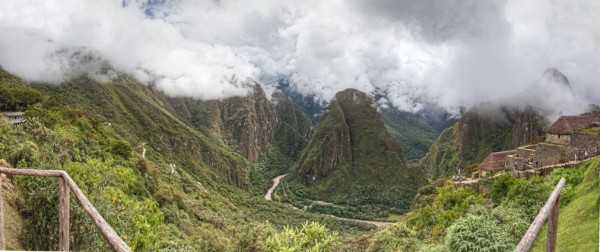 Река Урубамба, зелёные горы - всё это смотрится нереально. И это еще даже не начало таинственного города. Только лишь вид с площадки.
