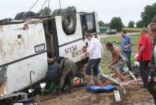 ДТП произошло сегодня утро в Черниговской области на трассе Киев-Чернигов. Автобус Неоплан, в салоне которого находилось, по разным данным, от 41 до 45 человек, пересек две сплошных, выехал на встречную полосу и перевернулся. В результате ДТП погибло 15 человек, еще 15 получили ранения и были госпитализированы.