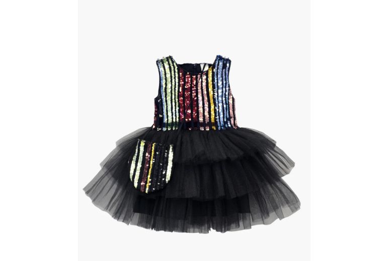 Нарядное платье для девочек классического черного цвета. Выполнено из качественного текстиля, внутри по всей длине подклад из удобной х/б ткани. На спине застегивается на невидимую молнию, лиф расшит маленькими цветными пайетками. Подол оформлен несколькими слоями воздушной сеточки и хлопковой юбкой. В комплект входит маленькая сумочка в тон платью.
