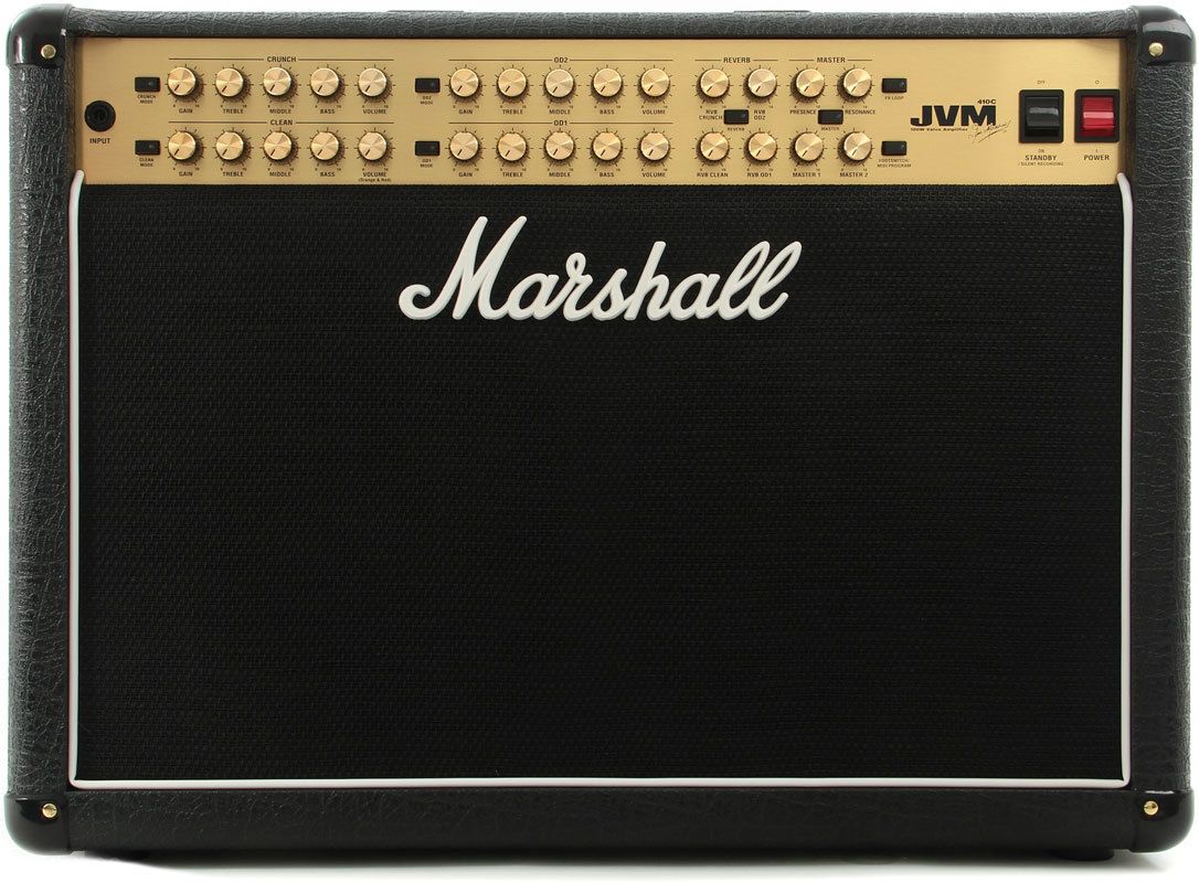 Это полностью ламповый четырехканальные усилитель нового поколения. Каждый канал имеет три режима работы, таким образом, получаем 12 различных звучаний заключенных в одном усилителе. Еще одним нововведением является MIDI-интерфейс, позволяющий интегрировать JVM410 в сет-апы управляемые по MIDI. Со встроенной памятью и переключаемыми настройками возможности Marshall JVM410 просто безграничны. Этот мини комбик для электрогитары оснащен цифровым ревербератором студийного качества, который подмешивается к основному сигналу по средствам параллельного подключения.