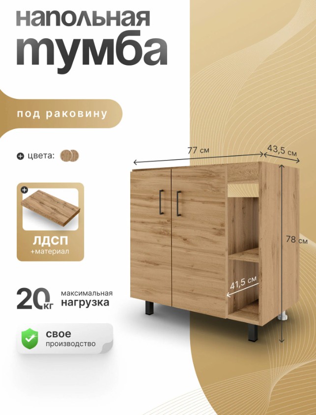 Если вы ищете, как выбрать мебель для ванной комнаты, чтобы она сочетала в себе стиль, функциональность и износостойкость — обратите внимание на тумбу под умывальник от СпадарДрэва, серия NIKA. Выполненная из ЛДСП с матовым лаком, она устойчива к влаге, солнечным лучам и не боится царапин. Несмотря на компактные размеры, тумба отлично справляется с хранением необходимых мелочей, а регулируемые ножки обеспечивают устойчивость даже на неровных полах. Элегантный цвет дуб вотан делает ее универсальной для интерьеров от классики до современного минимализма.