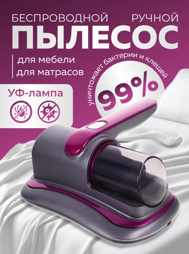 Ручной пылесос — лёгкий, компактный, идеально подходит для быстрой чистки диванов, кресел, подушек, автомобильных сидений.