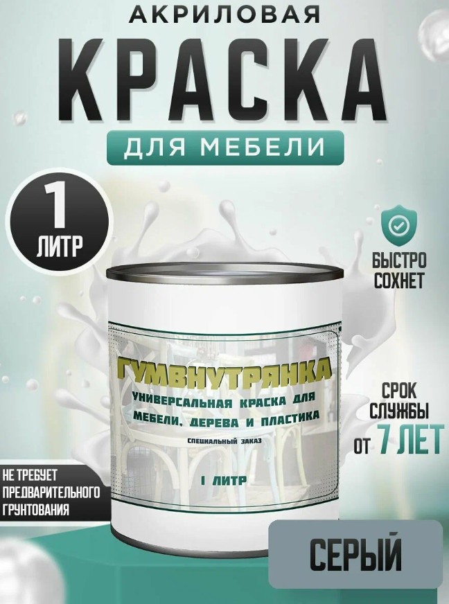 В рейтинг акриловых красок для мебели заслуженно входит Гумвнутрянка — прочная, экологичная и по-настоящему универсальная краска, которая изначально создавалась по спецзаказу с повышенными стандартами. Её стойкость к истиранию (1-й класс), адгезия и укрывистость делают её оптимальным выбором для обновления мебели, декора и даже нестандартных материалов вроде стекла и пластика. Цвет ложится ровно, без подтёков и разводов, а матовая поверхность придаёт интерьеру благородный, современный акцент.