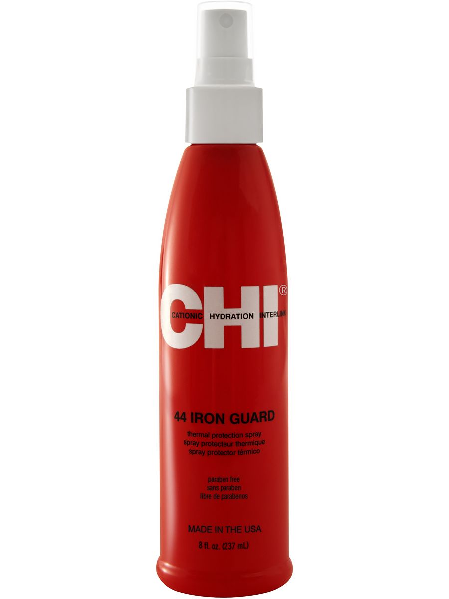 CHI 44 Iron guard с функцией стайлинга дает небольшую степень фиксации. Спрей подходит для ежедневного применения и предназначен для всех типов волос. Укладочный спрей придает волосам блеск и защищает при укладке горячими инструментами. Мгновенно придает волосам блеск, увеличивает толщину и объем волоса. Благодаря керамике CH 44 при нагреве волос, с уже нанесенными на них средствами стайлинга CH, вновь активируются протеины шелка, что позволяет несколько раз восстанавливать укладку без последующего использования данных средств. Идеально соответствует всем видам укладки, обеспечивает гладкую текстуру и невероятный блеск волосам, не склеивая их.