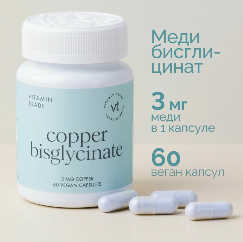 В лучшие бады для суставов и хрящей рейтинг хелат меди от VITAMIN TRADE уверенно занимает свои позиции благодаря продуманной формуле на основе меди бисглицината. Эта форма максимально усваивается организмом и участвует в жизненно важных процессах — от кроветворения до восстановления костной ткани. Медь в этом комплексе работает не в одиночку: глицин усиливает эффект, а растительные капсулы без «ешек» делают приём безопасным. Уникальное сочетание пользы для суставов, кожи, иммунитета и даже пигментации — достойный выбор для курса.