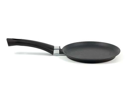 Блинная сковорода имеет низкий борт и удобную ручку, благодаря чему легко переворачивать и снимать блины. Утолщенное дно обеспечивает особые термоаккумулирующие свойства: блин равномерно пропекается по всей толщине и красиво румянится с обеих сторон.