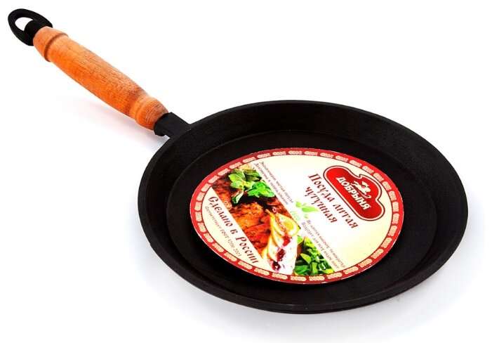 Чугунная сковорода Добрыня DO-3309 идеальна для приготовления блинов. Благодаря уникальной способности чугуна постепенно и равномерно прогреваться и долго держать жар, блины на этой сковороде готовятся быстро, получаются румяными и хорошо прожаренными. Бортики на сковороде низкие, поэтому переворачивать на ней блинчики очень удобно. Наличие деревянной ручки обезопасит ваши руки от ожогов во время жарки и сделает процесс готовки более удобным.
