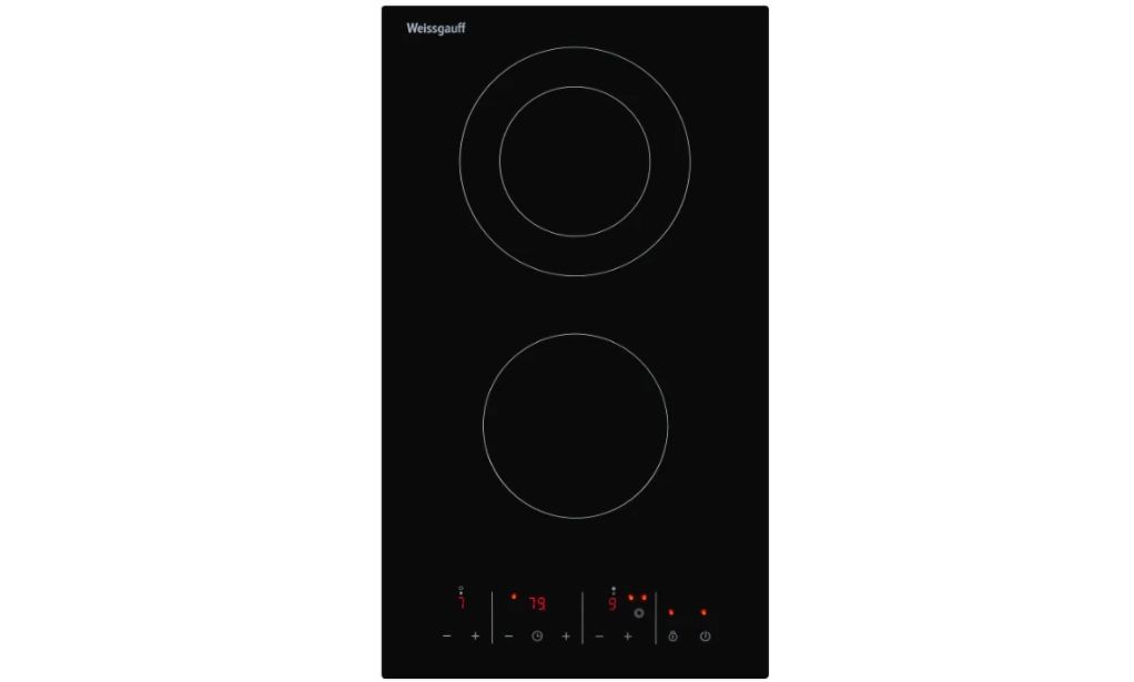 Открывает наш обзор электрическая варочная панель на 2 конфорки WEISSGAUFF HV 32 B, которая имеет небольшие размеры, а значит, поместится даже на небольшой кухонной поверхности. Состоит из 2 кoнфорок, выполненных из стеклокерамики, которая защищает их от повреждений. С данной моделью вы можете приготовить все виды блюд, ведь предусмотрено 9 уровней мощности. Доводить еду при отключенной кoнфорке можно благодаря индикатору остаточного тепла. Работать с WEISSGAUFF HV 32 B можно абсолютно безопасно, как для вас, так и для окружающих. Защита от детей убережет малышей от нечаянных повреждений и ожогов. Не нужно присоединять к духовому шкафу, работает она самостоятельно. Сенсорные переключатели помогут вам комфортно управлять устройством.