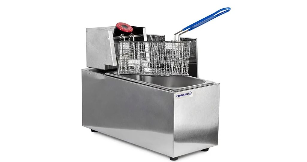 Открывает наш обзор фритюрница с системой для слива масла Foodatlas DF-80 Eco, предназначенная для приготовления различных продуктов путем их обжарки до хрустящей корочки в большом количестве масла на предприятиях общественного питания и торговли. Модель оснащена механическим управлением. В комплект поставки входит проволочная корзина.