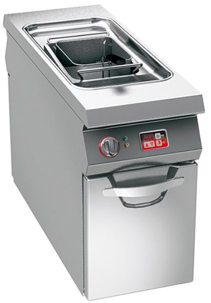 Фритюрница Angelo Po 04WFR3ED используется для приготовления широкого спектра блюд в большом объеме горячего масла или жира. Агрегат предназначен для использования на предприятиях общественного питания: в барах, кафе, бистро и ресторанах. Конструкция прибора выполнена из нержавеющей стали AISI 304. Дно устройства имеет уклон к дренажному отверстию, благодаря этому чистить фритюрницу очень легко. В задней стенке фритюрницы расположен кронштейн для подвешивания корзины.