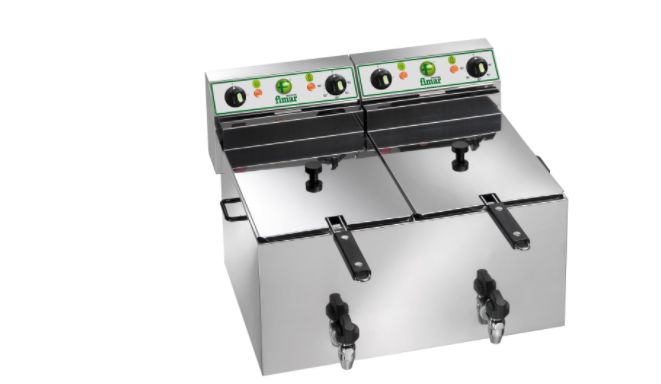 Фритюрница FIMAR FR88R предназначена для приготовления блюд в глубоком слое масла. Оснащена предохранительным термостатом с кнопкой возврата в исходное состояние, предохранительными кранами и съёмным верхним блоком. Для независимого использования каждая ванна оборудована собственным термостатом. Корпус, ванны, крышки и ТЭНы изготовлены из нержавеющей стали, выдвижные корзины – из хромированной проволоки, ручки корзин и крышек – из термоизолирующего пластика.