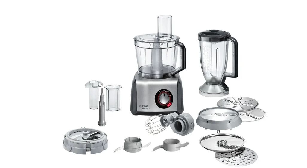 Продолжает наш рейтинг кухонный комбайн большой мощности Bosch MC812S814, способный выполнять десятки поставленных задач, включая измельчение отварного мяса в паштет, замешивание теста, шинкование овощей в салаты и даже нарезку картофеля ломтиками для фри. Вместительность большой чаши прибора составляет 3.9 л, а блендера – 1.5 л. При мощности 1250 Вт модель имеет 2 скорости работы, которые переключаются обычным поворотным регулятором. При таком обширном функционале остается удивительным тот факт, что кухонный комбайн обладает компактными габаритами: его ширина составляет 30 см, а глубина – 25 см. Двигатель модели защищен от перегрузок. Это значит, что не стоит опасаться преждевременного выхода комбайна из строя.