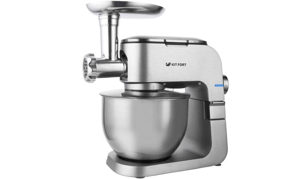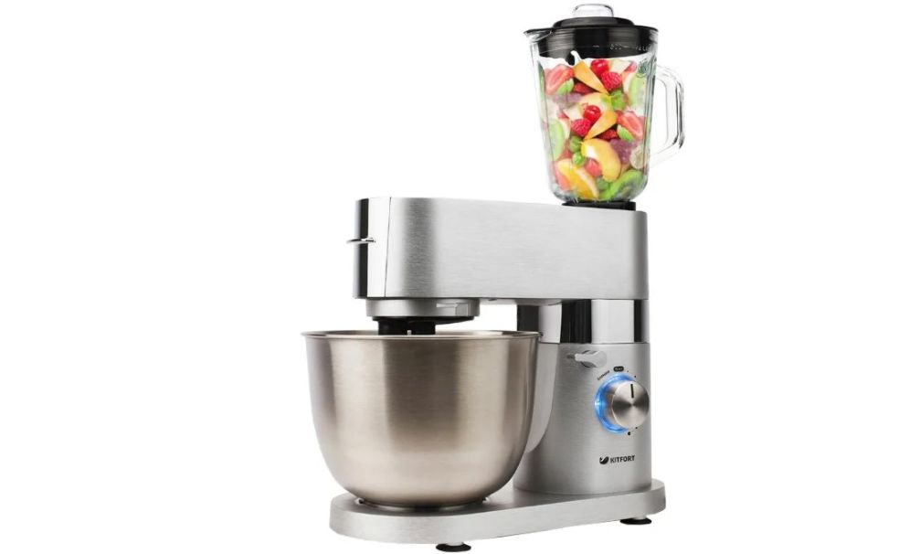 Завершает наш топ 10 кухонный комбайн большой мощности KITFORT KT-1339, представляющий собой функциональное устройство, сочетающее миксер и блендер. С таким стационарным прибором вам будет легко взбить сливки, яйца, крем, замешать тесто, а также смешать разные ингредиенты до получения однородной консистенции. Благодаря блендеру − насадке, которая устанавливается сверху на устройство, миксер позволяет приготовить молочные коктейли и соусы, а также супы-пюре.