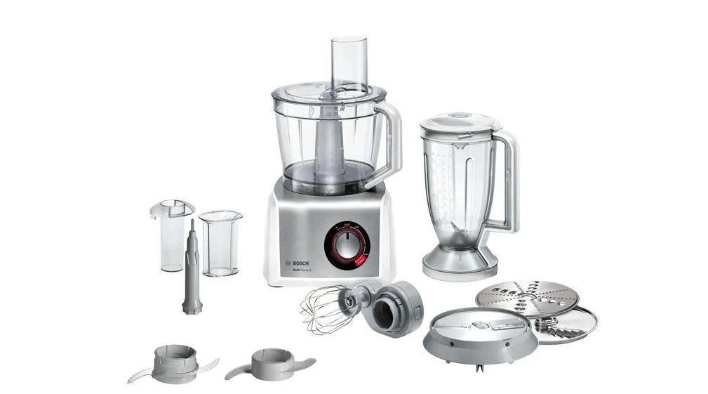Открывает наш обзор кухонный комбайн большой мощности Bosch MC812M865. Прибор включает в себя насадку-терку и диски для шинковки, используя которые вы без лишних усилий измельчите различные продукты для последующего приготовления витаминных салатов и заготовок. Этот домашний помощник побалует вас витаминными смузи, коктейлями, а также невероятно пышной и ароматной выпечкой, ведь комплектуется насадкой для теста. Чаша блендера и емкость для взбивания, которыми располагает Bosch MC812M865, выполнены с использованием пластика. Данный материал не выделяет неблагоприятные для здоровья соединения и не впитывает запахи. Воспользовавшись диском для драников, вы приятно удивите гостей и домочадцев дерунами с различными начинками.