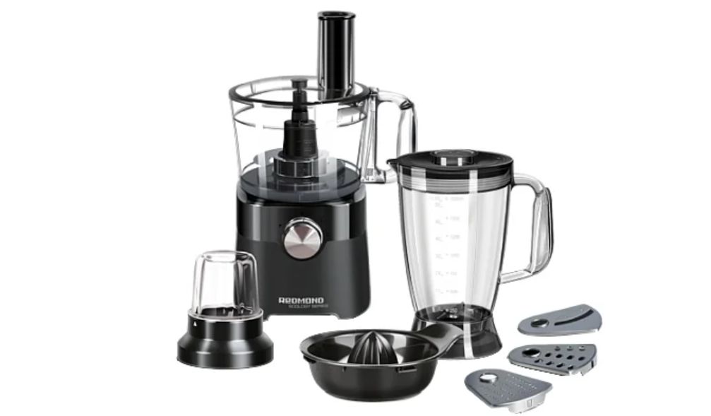 Кухонный комбайн Redmond RFP-3909, в отличие от прочих полезных в кулинарии устройств, позволяет решить сразу множество задач. При его помощи вы можете измельчить, выжать, взбить, смешать, нарезать или нашинковать ингредиенты – только вдумайтесь, сколько кухонных приспособлений заменит вам одно лишь это изделие. Работать аппарат может со скоростью максимум 18500 об/мин, при этом мощность комбайна равна 1500 Вт. Размеры изделия составляют 42x21x24 см – не так уж и много для столь полезного агрегата.