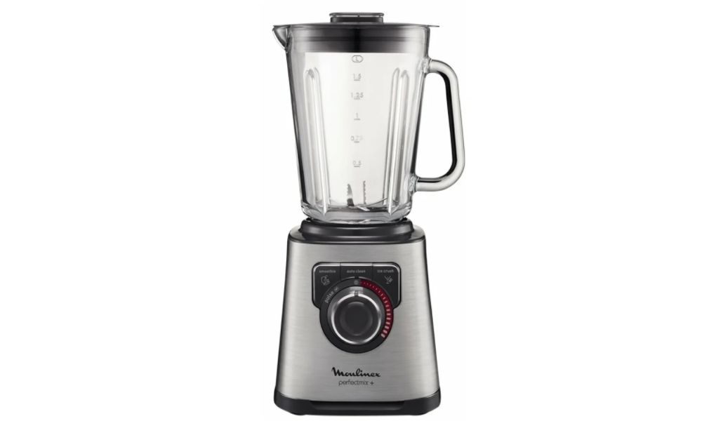 Блендер Moulinex Perfect Mix LM811D10 оптимально подходит для колки льда, приготовления разнообразных коктейлей и смузи, а также для измельчения твердых фруктов и овощей. Максимальная скорость вращения острых ножей из нержавеющей стали составляет 28000 об/мин. Модель снабжена высокопроизводительным мотором мощностью 1200 Вт и функционирует от электрической сети с напряжением 220-240 В. В комплектацию устройства включена специальная лопатка. Для изготовления корпуса был использован прочный и износостойкий материал.