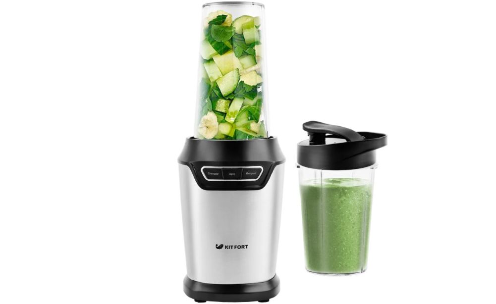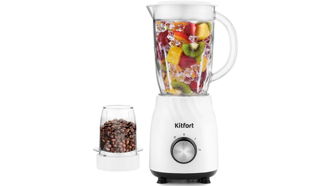 Продолжает наш рейтинг блендер с колкой льда Kitfort КТ-1365, который позволяет выполнять измельчение, смешивание, взбивание, замес жидкого теста. Особенностью модели является наличие в комплекте двух пластиковых стаканов объемом 0.7 л и 0.5 л, которые для удобства ношения оснащены крышкой и ручкой. Стальной нож с использованием 6 лезвий обеспечивает качественный результат за короткое время. Kitfort КТ-1365 имеет 3 режима приготовления. Электрический мотор отличается производительностью благодаря мощности 1000 Вт и высоким уровнем надежности. Расположенные на основании нескользящие прорезиненные ножки гарантируют надежную фиксацию прибора.