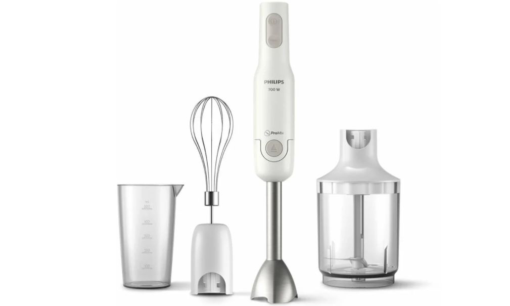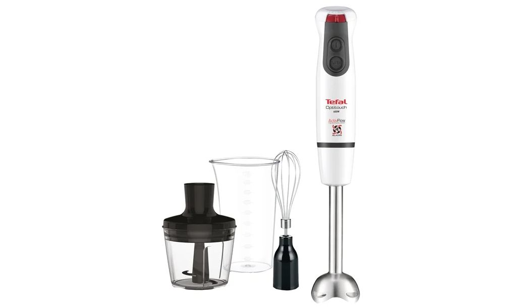 Открывает наш обзор блендер с турборежимом Tefal HB833132, который станет незаменимым помощником на кухне. Прибор способен крошить, перемалывать, смешивать или взбивать различные продукты. Он оснащен мощным мотором, который быстро и легко справляется как с мягкими, так и с твердыми ингредиентами, в том числе замороженными овощами и фруктами или орехами. Блендер комплектуется двумя насадками: венчиком для взбивания и погружной насадкой-измельчителем для приготовления пюре и смузи. Также в набор входит стакан-измельчитель объемом 500 мл и пластиковый мерный кувшин с удобным носиком для аккуратного переливания жидких смесей.