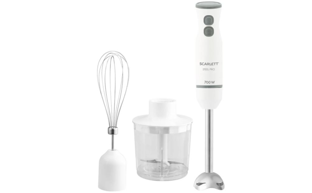 Блендер Scarlett SC-HB42F60 помогает быстро и качественно справляться со взбиванием, смешиванием, измельчением продуктов, упрощая процесс приготовления разнообразных блюд. В блендере предусмотрено 2 скоростных режима, легко переключаемых с помощью кнопок на рукоятке. В комплект входят венчик, насадка-блендер и чаша объемом 0.5 л. Блендер выполнен в пластиковом корпусе эргономичной формы и имеет стальные рабочие части, которые характеризуются надежностью, простой очисткой и устойчивостью к образованию коррозии.