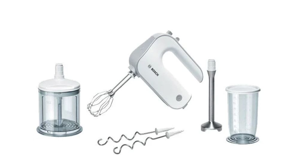 При помощи универсального миксера Bosch MFQ 4080 выполняется перемешивание, взбивание и измельчение различных типов продуктов. Для взбивания сливок и кремов предусмотрены инновационные венчики «Fine Creamer», которые обеспечат высокие результаты перемешивания. Тихое легкое устройство способно работать на 5 скоростях, а для смены скорости на рукоятке предусмотрен простой переключатель. Модель оснащена измельчителем. На чаше емкостью 1.2 л установлена крышка для защиты от разбрызгивания, измельчение выполняется встроенными ножами, а движущим элементом является привод миксера. Насадка-блендер устанавливается в торцевую часть.