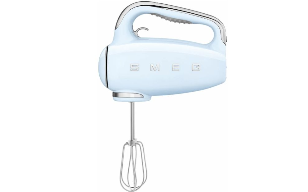 Завершает наш топ 10 ручной миксер до 15 000 рублей Smeg HMF01PBEU. Этот прибор представляет собой стильный, мощный и удобный миксер, корпус которого выполнен из литого алюминия. В модели предусмотрено 9 режимов скоростей, а также имеется Turbo режим с плавным стартом. Мощность миксера составляет 250 Вт, а выбранный режим отображается на LED-дисплее, расположенном в верхней части устройства. Два металлических венчика для более воздушной текстуры — для взбитых сливок, соусов или яичных белков. Два венчика Optimus, идеально подходящие для полутвердого теста, такого как печенье и основа для пирога; два крюка для дрожжевого теста.