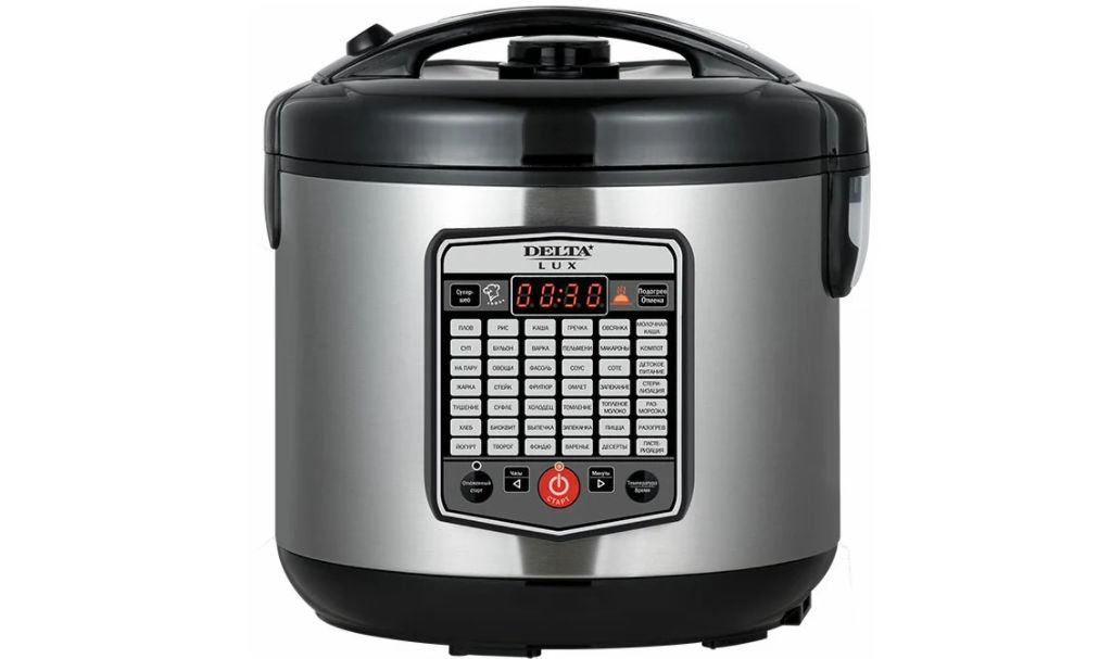 Продолжает наш рейтинг мультиварка с функцией фритюрницы DELTA LUX DL-6525. Данный прибор исключит необходимость в постоянном разогреве кулинарных изысков перед непосредственной сервировкой стола – для этого в нем реализована функция поддержания температуры. Молниеносный доступ к параметрам гарантируют сенсорные элементы и функциональный дисплей. Среди 42 возможных программ каждый подберет то, что по душе именно ему – десерты, супы, домашние йогурты, сытные завтраки и обеды, а также многое другое. Чтобы приготовить необходимые блюда, отныне вам не придется тратить свободное время – попросту активируйте функцию отложенного старта, реализованную в модели DELTA LUX DL-6525. Входящий в комплект мерный стакан обуславливает возможность приготовления даже самых сложных кулинарных шедевров. Для быстрой сервировки производитель предусмотрел специальный половник и ложку.